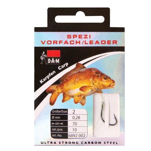 Sucessfully tested and very economic! Spezi ? this term stands for decades of D.A.M.?s experience in theory and practice of fishing. Thanks to the personal commitment of our employees and test fishermen, we know exactly what is important for lines and hooks. You can be sure that these leaders are always the right thing. Our Spezi leaders have been conceived by practicians for practice. They combine high-quality hooks with our best DAMYL ®. Even the colour of the hooks comes up to experiences from successful tournaments and test fishing.content: 10 Pcs leader length: 70 cmhooksize: 6line diameter: 0,22 mm